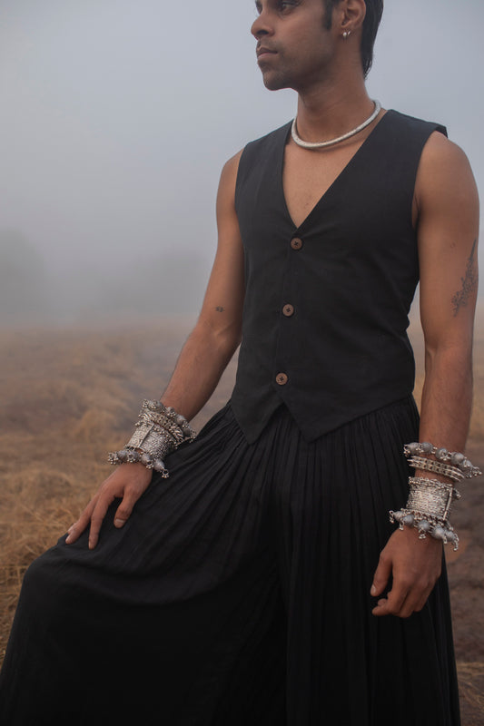 Stemming from the transformative experiences Ashwin has had over the last couple of years, GenFree is a line of planet conscious yet fashion forward clothing looked at from a gender-free lens. It is a collection that explores the concept of freedom and what it means to people of contemporary times. It encourages them to be free from social conditioning and hence wear who they are and not what they are ‘expected’ to be. The collection finds a balance between sharp and flowy silhouettes which to Thiyagarajan represents a balance between femininity and masculinity. It is designed to be free from gender, race and anything else that separates us.